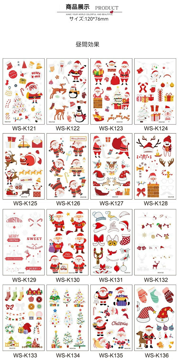 クリスマス フェイスシール 子供 8枚 タイプ1 タイプ2