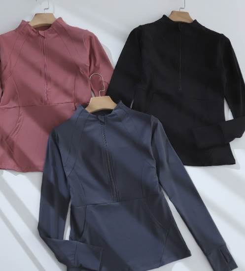 トップス トレーニングウエア 袖付き 長袖 ミディアム丈 プルオーバー 襟なし ラウンドネック ハーフジップ 通気性 速乾性 かわいい 大人可愛い シンプル カジュアル 上品 おしゃれ お洒落 大人