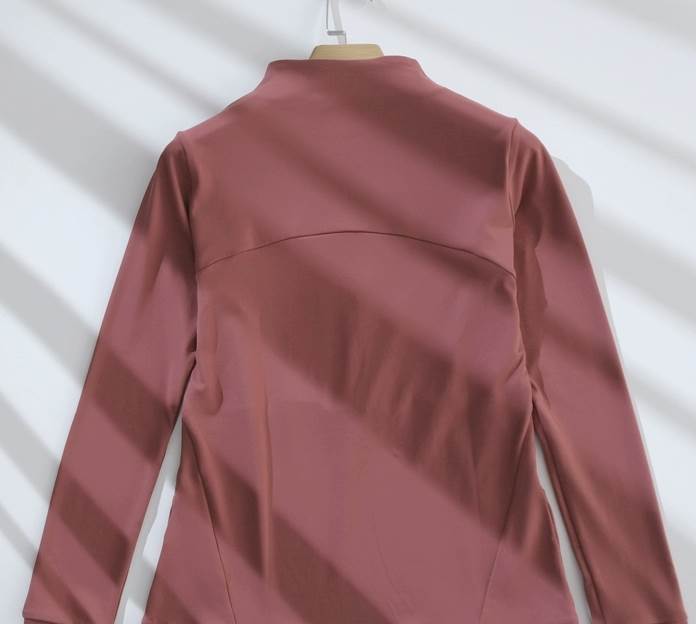 このトレーニングウエアは、袖付きで長袖のミディアム丈です。