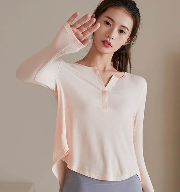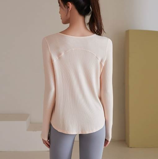 トップス トレーニングウエア 袖付き 長袖 ラグランスリーブ ショート丈 プルオーバー 襟なし ラウンドネック 通気性 速乾性 ウエストマーク タイト かわいい シンプル カジュアル 大人 大人可愛い