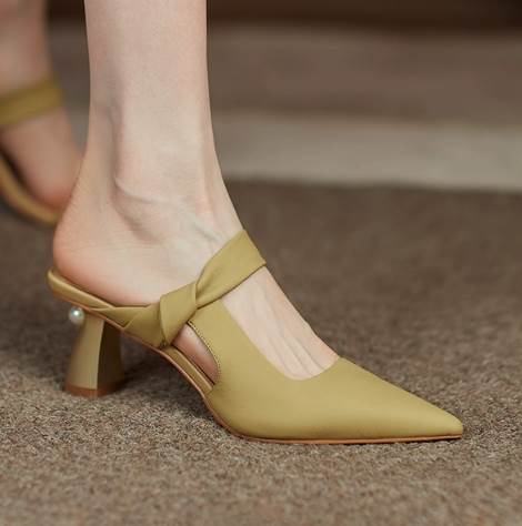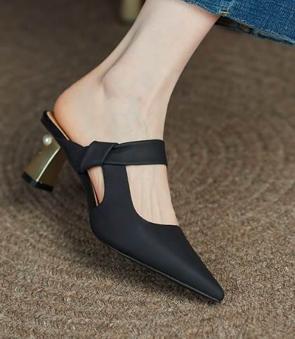 レディース ミュール ハイヒール 太ヒール 6cm ポインテッドトゥ 美脚 脚長 レザー 大人可愛い きれいめ シンプル カジュアル 上品 おしゃれ かっこいい エレガント 存在感 シック ス クール