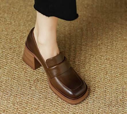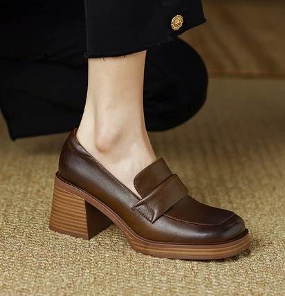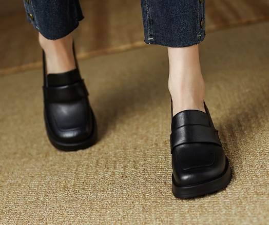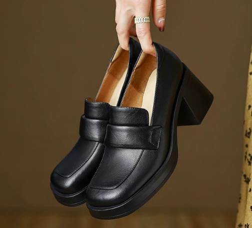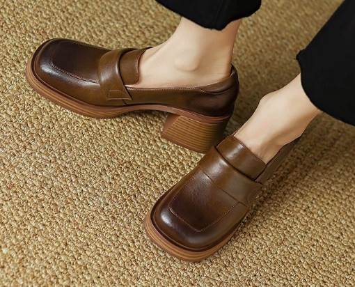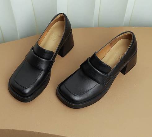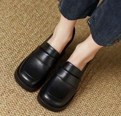 異国風 レディース ローファー 革靴 メリージェーンシューズ 太ヒール 厚底 6.7cm スクエアトゥ 革 かわいい 大人可愛い きれいめ シンプル カジュアル 上品 レトロ エレガント キ おしゃれ