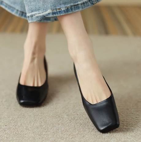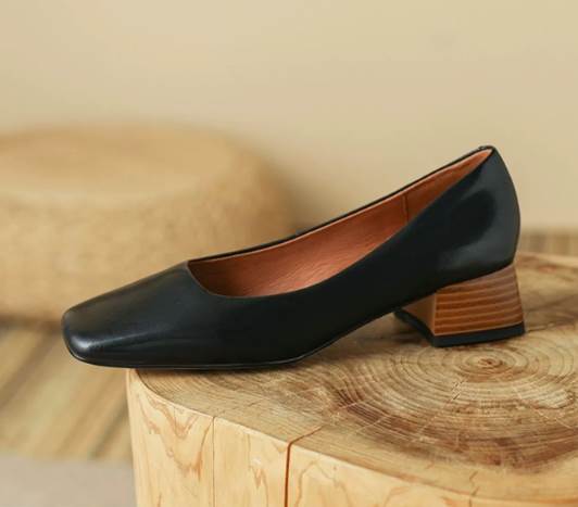 レディース パンプス 革靴 太ヒール ローヒール 3.5cm スクエアトゥ 大人可愛い きれいめ シンプル カジュアル 上品 レトロ クール シック クラシック 知的 高級感 春 無地 デート お 秋