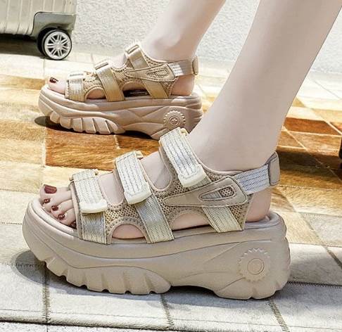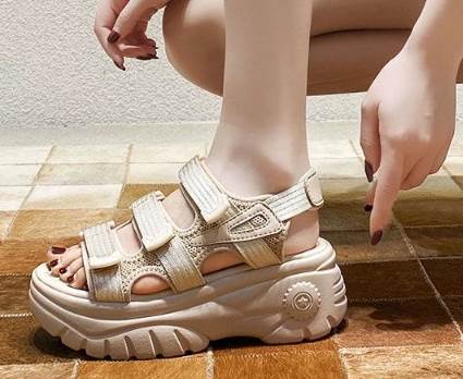 ボリュームのあるヒールがおしゃれな厚底スポーツサンダル。普段使いはもちろんですが、防水機能が備わっているのでプールや海、お子様との水遊びの時にも大活躍します。ヒールの高さは6センチと少し高めなのでスタイルよく見せてくれるのも嬉しいポイントです。