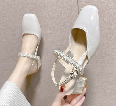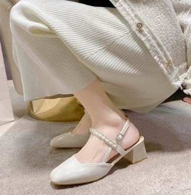 レディース ミュール ストラップシューズ 太ヒール チャンキーヒール 4.5cm ラウンドトゥ ストラップ ベルト パール ビジュー 美脚 かわいい 大人可愛い きれいめ 上品 おしゃれ エレガント ラブリー キュート ガーリー 存在感 華やか クラシック フェミニン 春 秋 OL デート お出かけ イベント レストラン ショッピング 美術館 プラネタリウム スタイル 高見え モテ 10代 20代 30代 40代 22.5cm 23.0cm 23.5cm 24.0cm ホワイト アプリコット