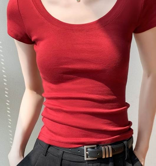 トップス Tシャツ カットソー プルオーバー 袖あり 半袖 ラウンドネック スリム タイト 細身 きれいめ シンプル カジュアル 大人可愛い ラフ モード系 セクシー 春 夏 10代 20代 30 秋