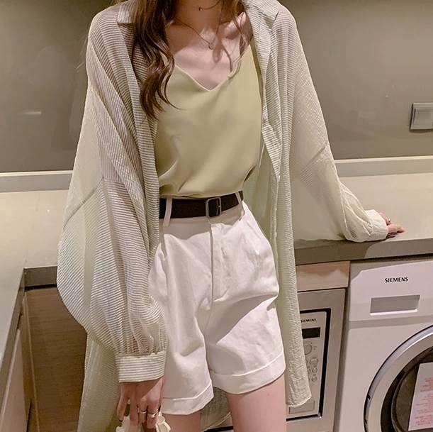 襟付きで角襟が印象的なデザインで前開きがあり薄手でかわいいデザインです。