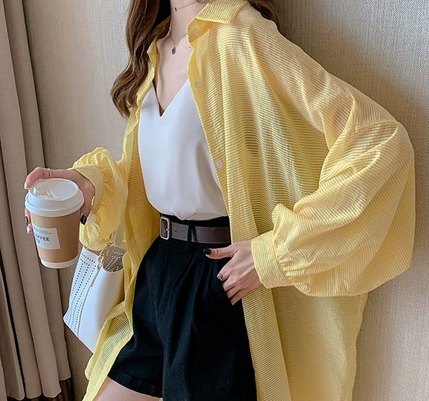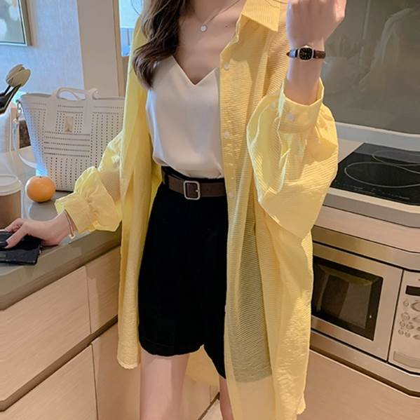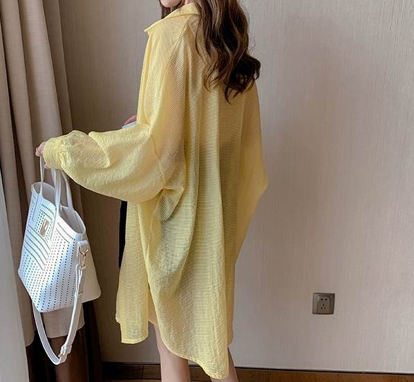 トップス シャツ ロング丈 袖付き 長 レディースファッション 割引 イエロー ブルー グリーン S M L XL 2XL 3XL