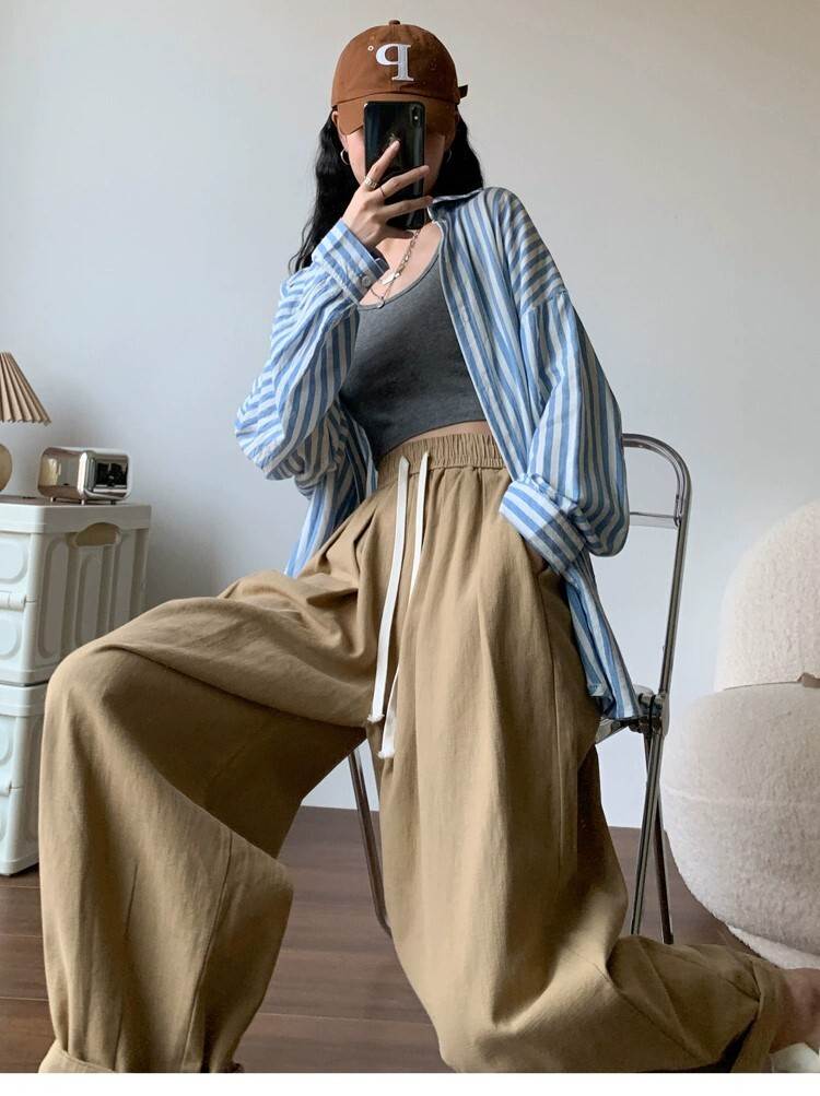 自然なシワ感のあるコットン素材が上品な印象を与えるワイドパンツ。