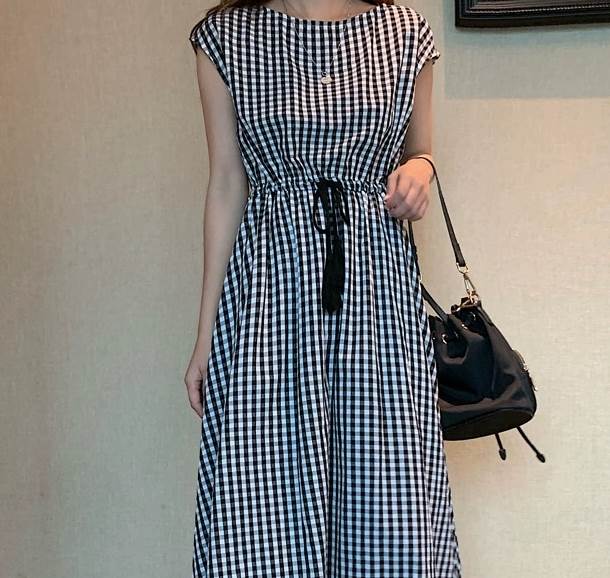 ワンピース ミモレ丈ワンピース フレア レディースファッション 続々登場 ライトグリーン ネイビー ベージュ グリーン ダークグリーン オレンジ ブラック チェック柄 S M L XL 2XL