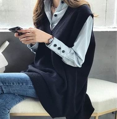 トップス ベスト ニット ロング丈 プルオーバー Vネック ふわふわ かわいい きれいめ シンプル カジュアル 大人 上品 おしゃれ かっこいい こなれ感 ラフ 個性的 主役級 秋 冬 20代 無地