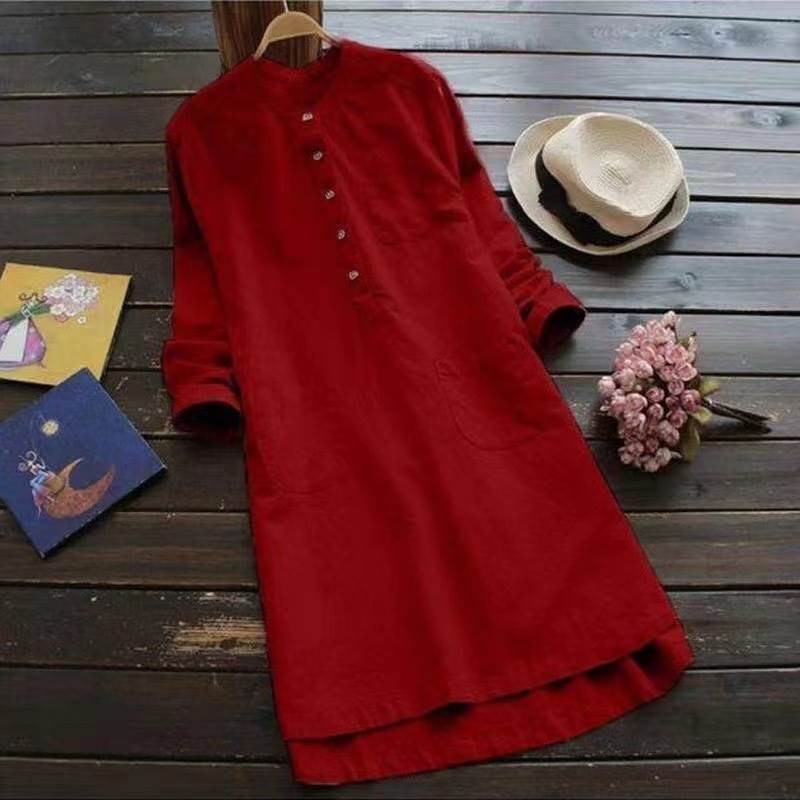 ワンピース ミドル丈 袖あり 長袖 ラウンドネック ルーズ Aライン ポケット プルオーバー 綿 麻 薄手 コットン 大人可愛い きれいめ シンプル カジュアル 大人 上品 お洒落 かっこいい レトロ 大人女子 こなれ感 ラフ ラブリー キュート とろみ感 抜け感 無地 夏 10代 20代 レディース デート お出かけ 女子会 お泊まり 休日 アウトドア 韓国 オルチャン モテ トレンド 流行 S M L XL 2XL 3XL 4XL 5XL 大きめ ホワイト ブラック レッド グリーン ピンク ネイビー