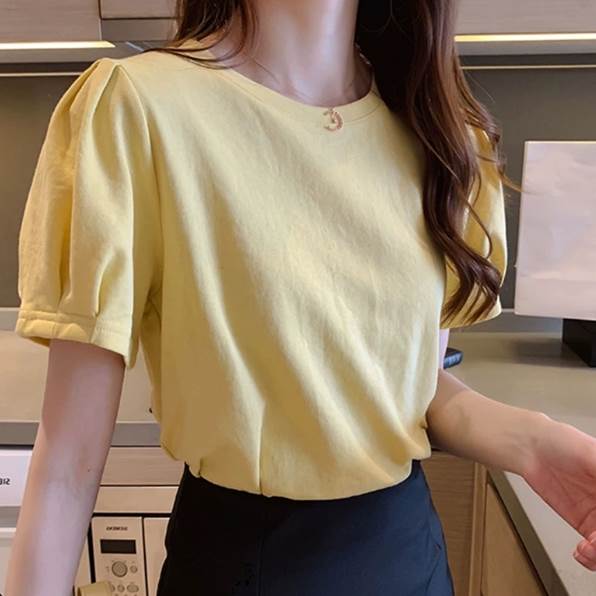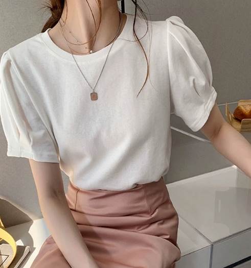 トップス カットソー プルオーバー 袖あり 半袖 パフスリーブ 襟なし ラウンドネック かわいい 大人可愛い きれいめ シンプル カジュアル 大人 上品 おしゃれ かっこいい レトロ 大人女子 こなれ感 ラフ キュート 個性的 主役級 存在感 無地 春 夏 秋 冬 オールシーズン 10代 20代 30代 レディース 女性用 OL 通勤 オフィス 学生 通学 デート お出け 公園デビュー 女子会 お泊まり 休日 旅行 リゾート イベント アウトドア 着回し 普段使い 重ね着 ファッション コーデ