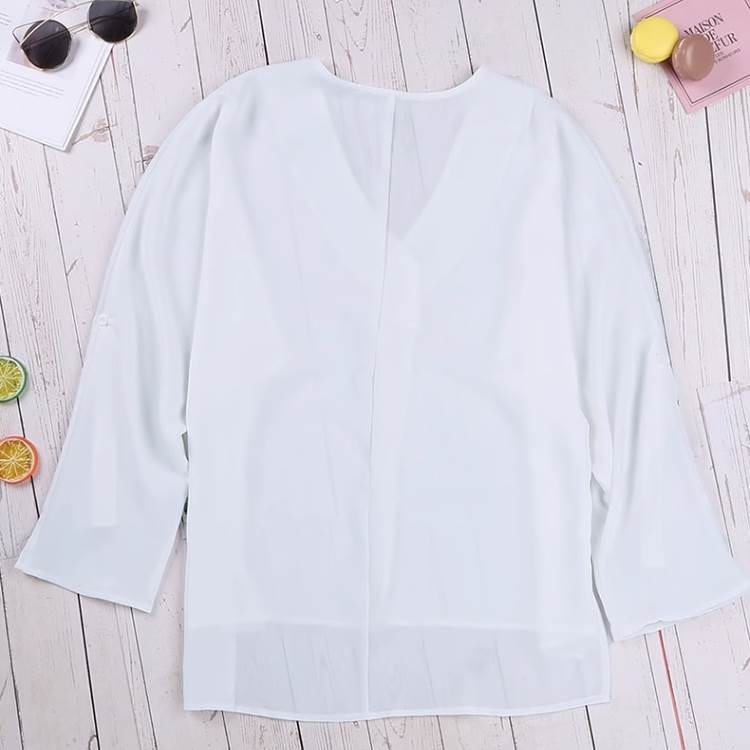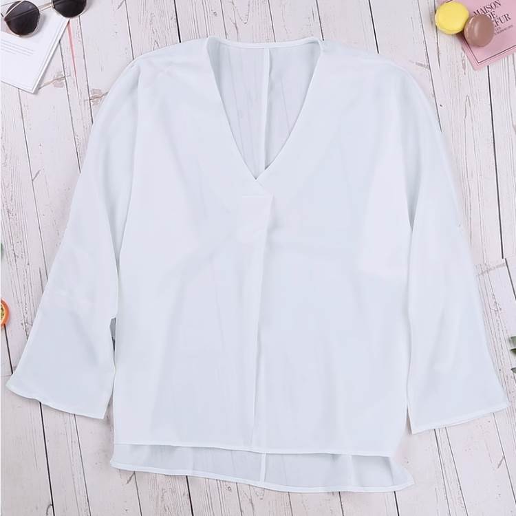 シャツ トップス 7分袖 Vネック 薄手 きれいめ シンプル 大人 上品 おしゃれ 無地 春 夏 秋 20代 30代 レディース 白 黒 2XL 大きいサイズ 透け感 ミディアム丈 スリ プルオーバー