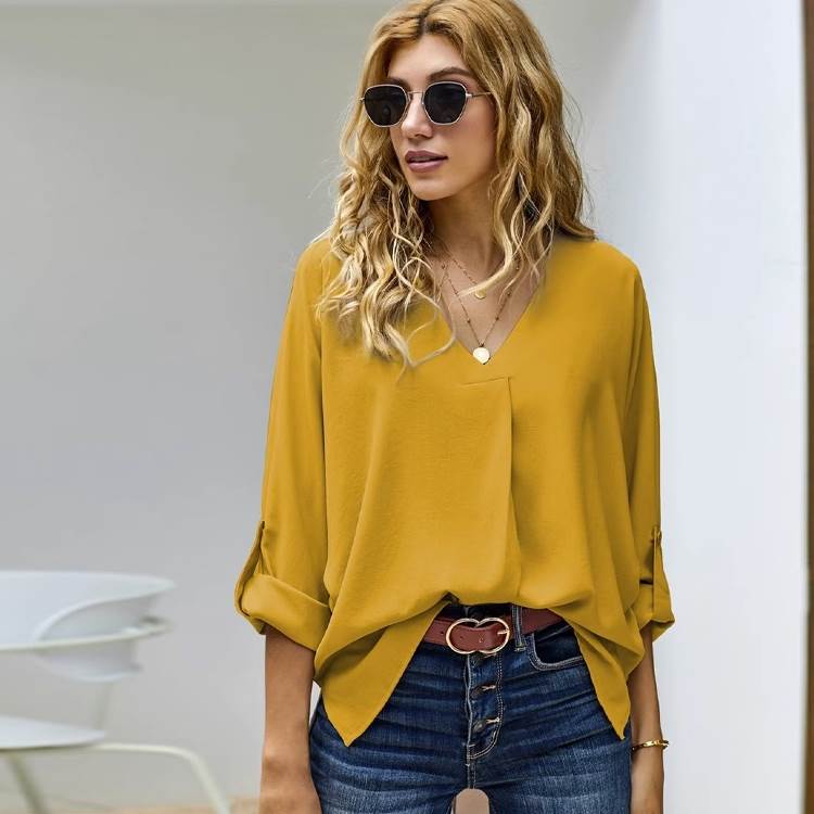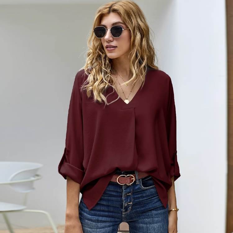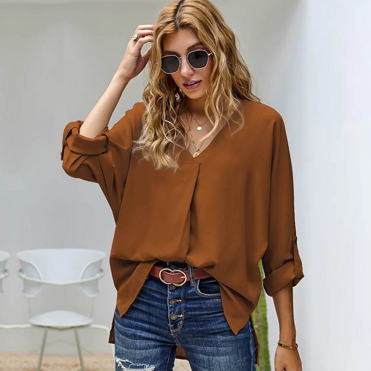 シフォンシャツは、オフィスやデートなど、様々なシーンで活躍するきれいめトップスです。Vネックや7分袖のデザインは、女性らしさを引き立てます。色展開も豊富で、白や黒はビジネスシーンにぴったりですし、アプリコットやピンクはプライベートでのお出かけやデートにもぴったり。普段使いにも活躍する上品な一枚です。