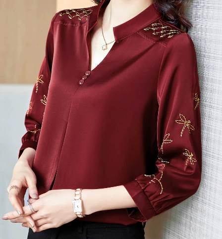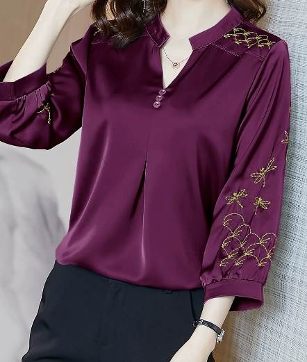 トップス シャツ シルクシャツ ブラウス プルオーバー 袖付き 7分袖 襟なし Vネック 刺 かわいい 大人可愛い きれいめ シンプル 大人 上品 おしゃれ かっこいい 大人女子 レトロ こなれ感 アジアン エスニック エレガント 華やか 個性的 主役級 存在感 無地 オールシーズン 20代 30代 レディース デート お出かけ 女子会 お泊まり 休日 リゾート 旅行 ホテル ショッピング レストラン 二次会 パーティイベント 着回し 普段使い M L XL 2XL 3XL 4XL ゆったり コーデ