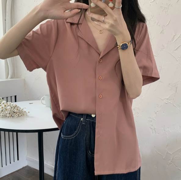 トップス シャツ 袖付き 半袖 襟付き 角襟 前開き かわいい 大人可愛い きれいめ シンプル 大人 上品 おしゃれ かっこいい レトロ 大人女子 こなれ感 ラフ クール メンズライク ボーイッシュ 個性的 主役級 存在感 無地 春 夏 10代 20代 レディース 女性用 ママ OL 通勤 学生 通学 デート お出かけ 女子会 お泊まり 休日 リゾート アウトドア 旅行 ホテル ショッピング レストラン 着回し 普段使い 重ね着 S M L ファッション コーデ スタイル ゆったり 楽ちん オルチャン