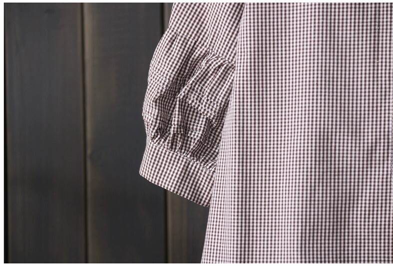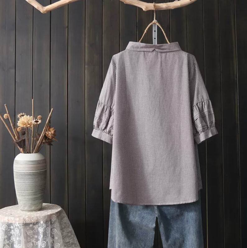 トップス シャツ 半袖 ギンガムチェック パフスリーブ ゆったり 袖あり 襟付き 前開き 綿 麻 リネン 薄手 コットン かわいい シンプル カジュアル 大人 おしゃれ かっこいい レトロ 上品