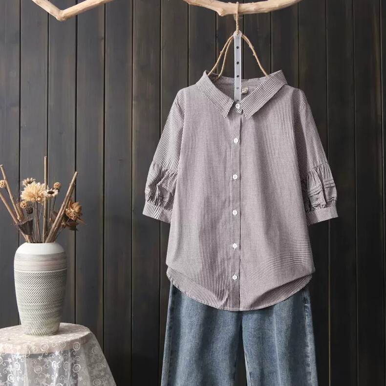 トップス シャツ 半袖 ギンガムチェック パフスリーブ ゆったり 袖あり 半袖 襟付き 前開き 綿 麻 リネン 薄手 コットン かわいい 可愛い シンプル カジュアル 大人 上品 おしゃれ お洒落 かっこいい レトロ 大人可愛い 大人女子 こなれ感 ラフ ラブリー キュート クール 抜け感 柄 チェック柄 春 夏 秋 10代 20代 30代 40代 50代 60代 レディース 女性用 オフィス ビジネス OL 通勤 学生 通学 デート お出かけ 休日 着回し 普段使い XL 2XL 3XL 4XL 大きめ