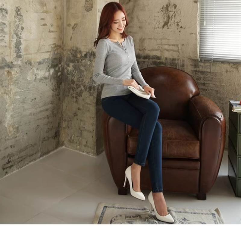 シンプルながらもヘンリーネックでワンポイントになる長袖トップス。