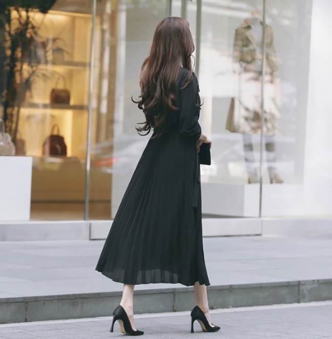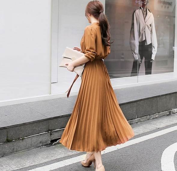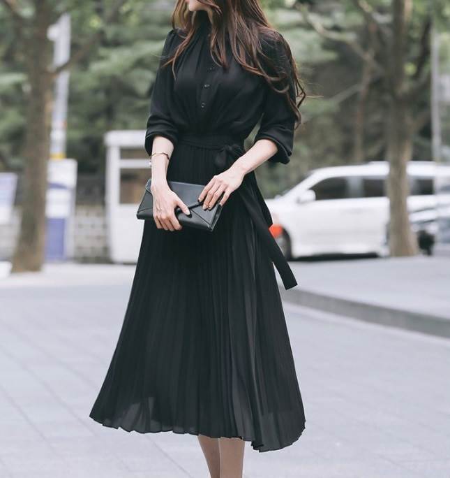 レディース ワンピース ロング 長袖 バンドカラー Aライン プリーツ シフォン ウエストマーク ウエストリボン かわいい 大人可愛い きれいめ シンプル 上品 おしゃれ レトロ 個性的 エレガント モダン 主役級 存在感 抜け感 おとな フェミニン 大人女子 無地 春 秋 授業参観 ママ オフィス ビジネス OL 通勤 学生 学校 通学 デート お出かけ 旅行 レストラン 女子会 休日 高原 ホテル ガーデン 合コン コンパ カフェ 婚活 韓国 コーデ 体型カバー モテ 清楚 S M L XL ブラック