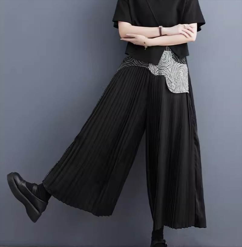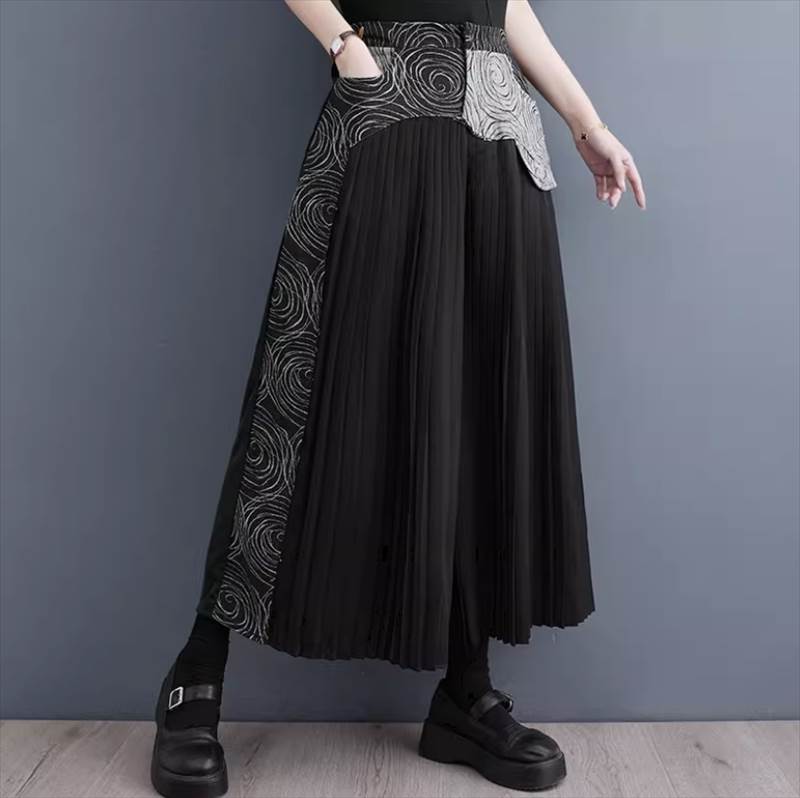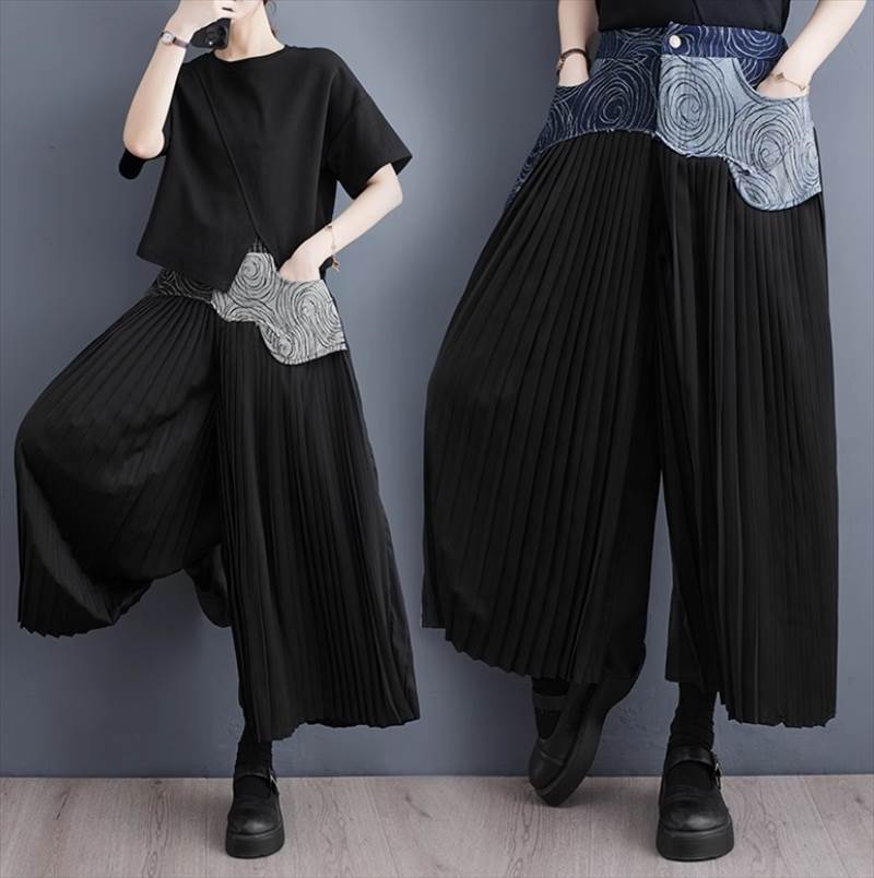 個性的 レディース パンツ ボトムス ガウチョパンツ ワイドパンツ プリーツパンツ ロング ワイド ストレート プリーツ ポケット ハイウエスト ウエストゴム 上品 かっこいい レトロ メン おしゃれ