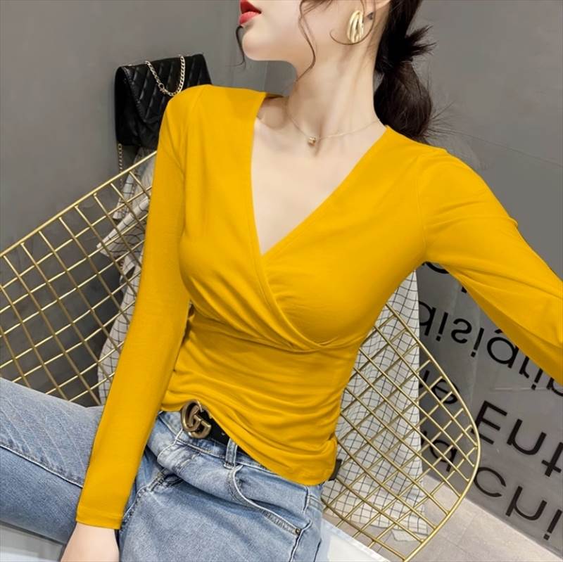 トップス Tシャツ ミドル丈 長袖 合わせV Vネック スリム ストレート きれいめ シンプル 大人 おしゃれ お洒落 無地 春 秋 10代 20代 30代 40代 レディース デート お出かけ ファッション コーデ スタイル サイズ S M L XL 2XL 色展開 カラバリ豊富 ホワイト ブラック レッド グリーン パープル グレー イエロー ピンク オレンジ ネイビー