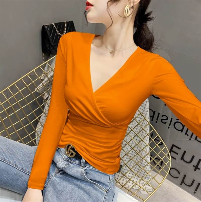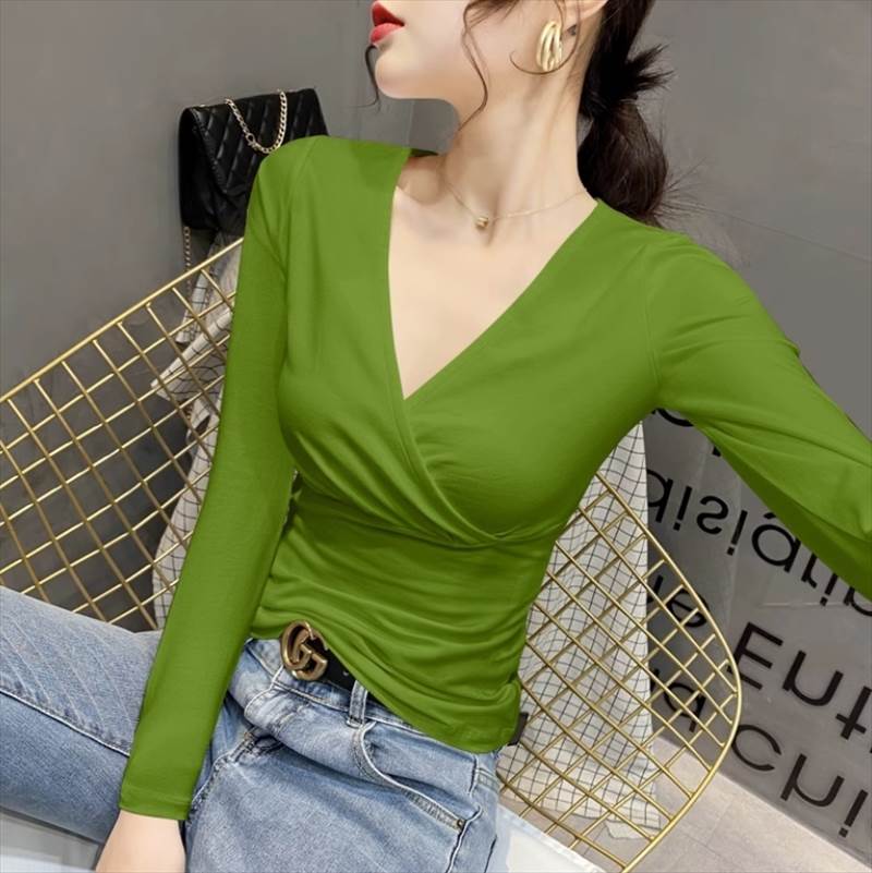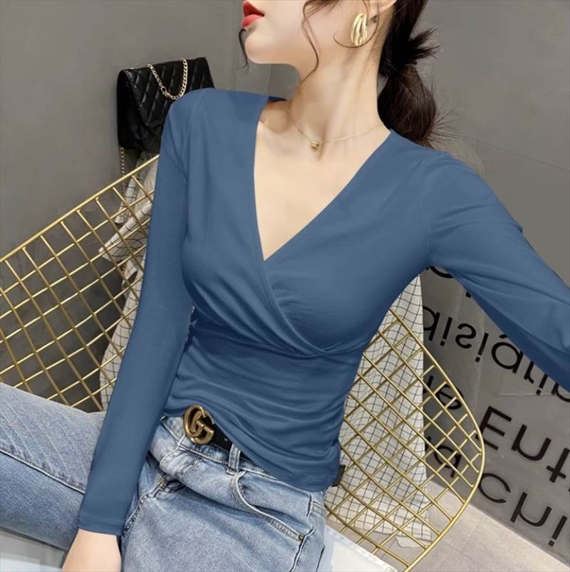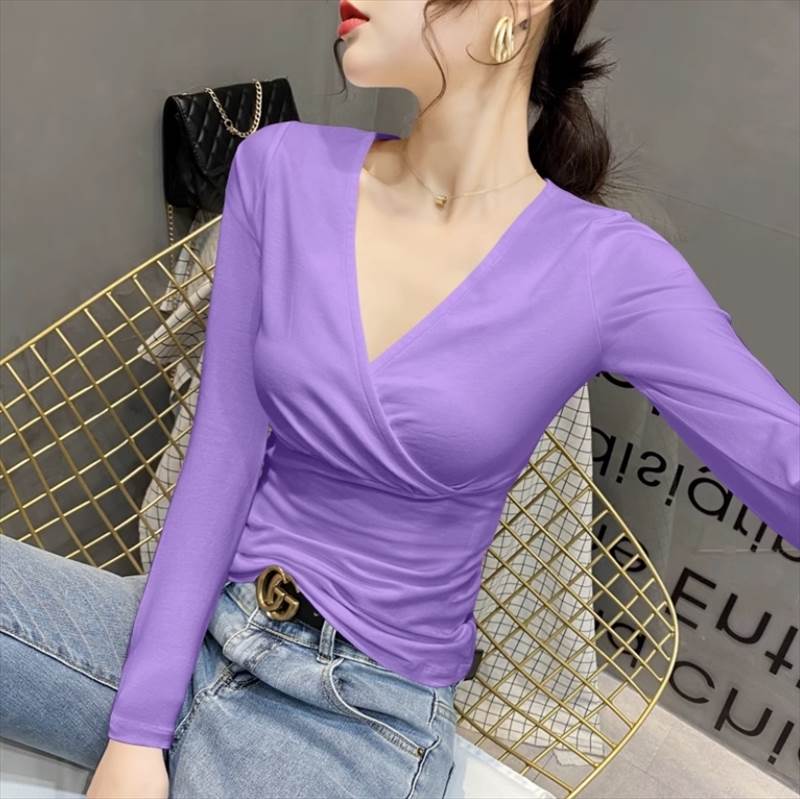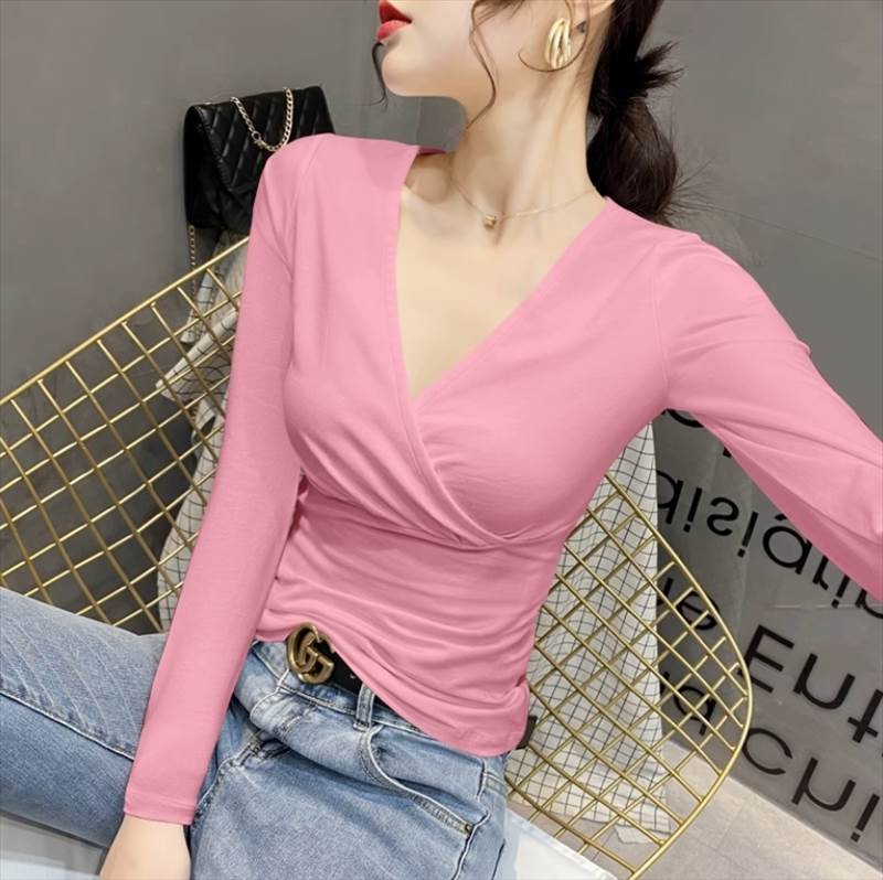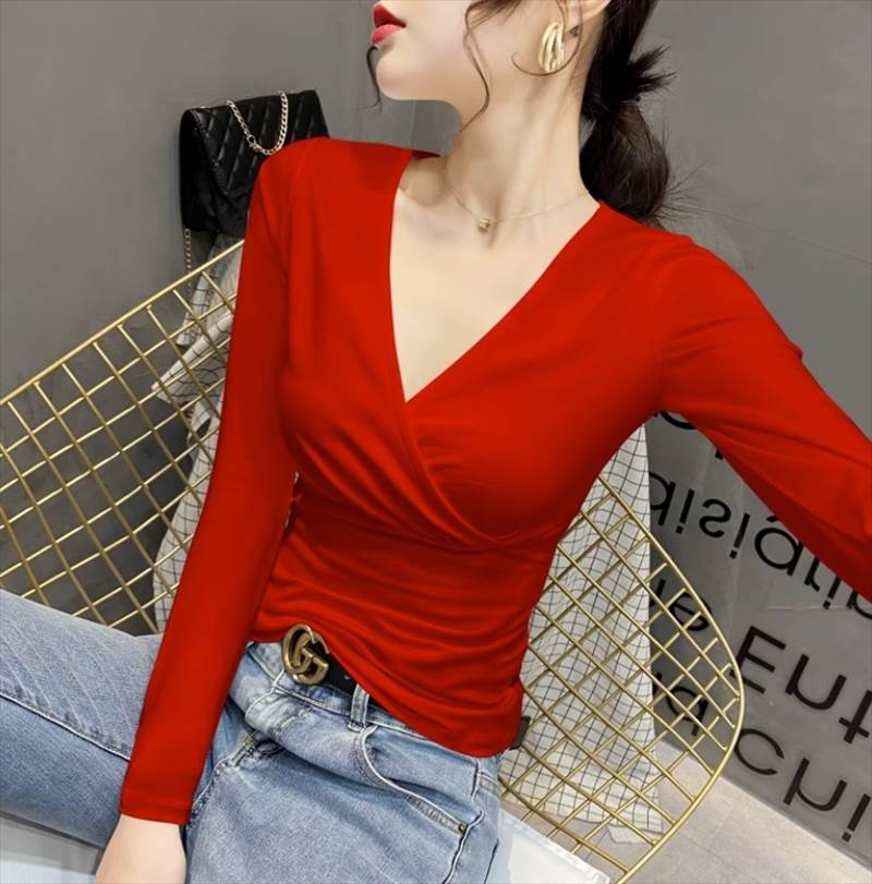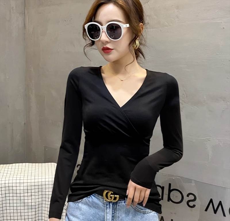 合わせVネックのデザインがおしゃれポイント。Vラインがデコルテを美しく見せ、きれいめながらもシンプルなデザインで、様々なシーンに合わせてコーディネイトしていただけます。長袖なので季節感もあり、春秋だけでなく冬でもインナーとして重宝します。カラバリも豊富で複数買いしたくなるアイテムです。