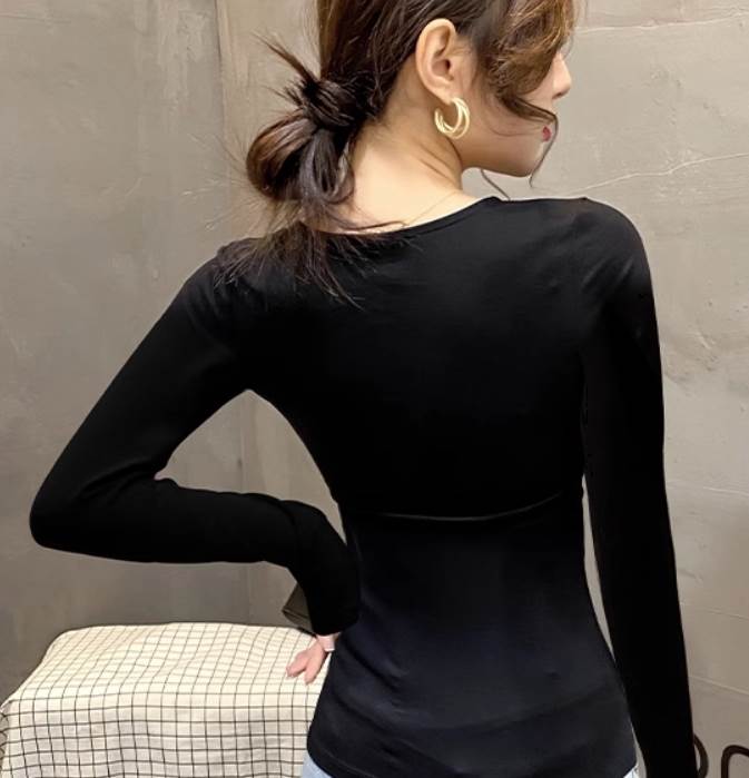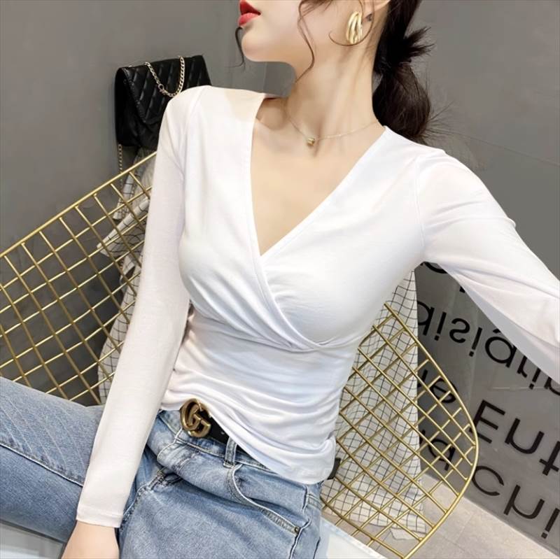 トップス Tシャツ ミドル丈 長袖 合わせV Vネック スリム ストレート きれいめ シンプル 大人 おしゃれ 無地 春 秋 10代 20代 30代 40代 ファッション コーデ スタイル レディース
