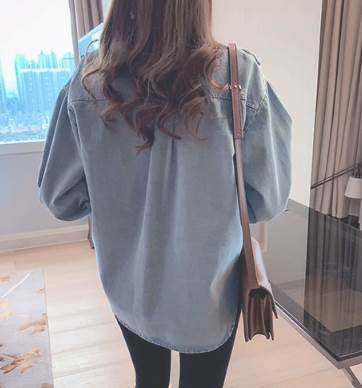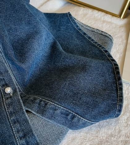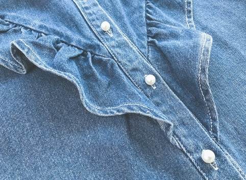 胸元のフリルがガーリーな長袖デニムシャツ。ホワイトのパールボタンもアクセントになっていて可愛いです。フリルが入っているのでかっちりとしすぎずに柔らかな印象にしてくれる一枚なので、プリーツスカートやシフォンスカートなど女性らしいアイテムとの相性も抜群。甘すぎなコーデにしたくない方はスマートなパンツを合わせると◎足元にヒールを持ってくるとコーディネートが締まります。