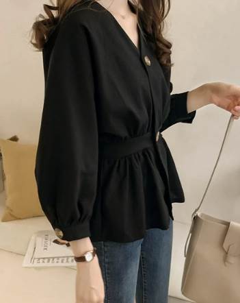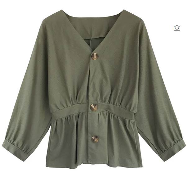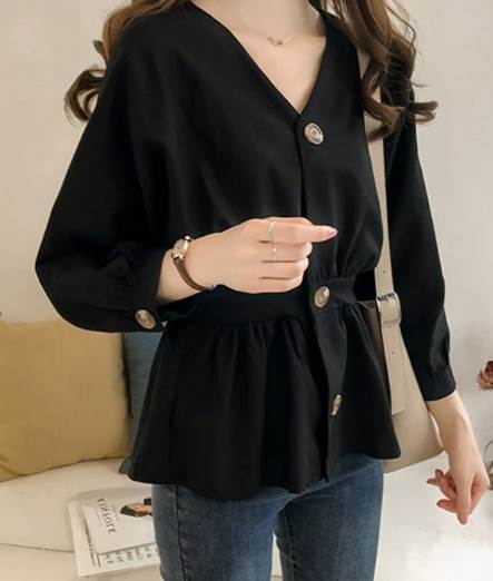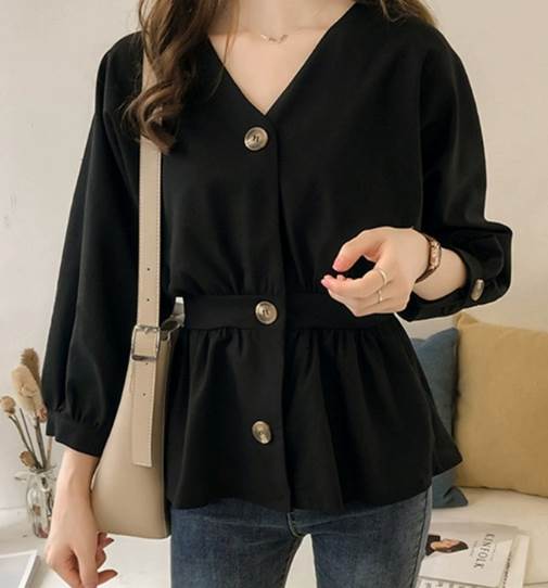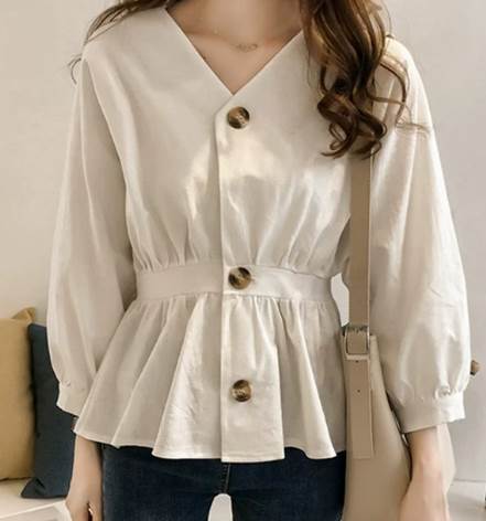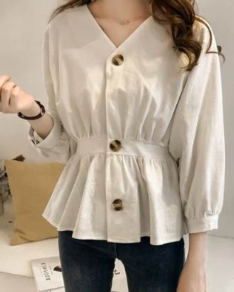 べっこうボタンが大人可愛いチュニック。ウエストに切り替えデザインが入っているので華奢見えできます。切り替え部分から入っているプリーツデザインもおしゃれなので、すっきりとしたシルエットのボトムスによく合います。