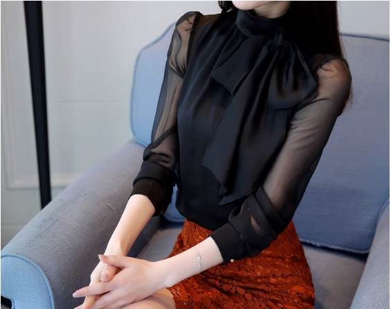 トップス ブラウス レギュラー丈 長袖 ハイネック シフォン 透け感 薄手 大人 上品 お洒落 セクシー エレガント フォーマル 無地 オールシーズン 30代 プルオーバー レディース リボン 40代