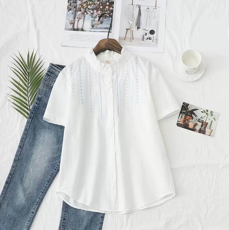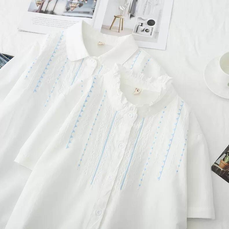 トップス シャツ 角襟 フリル襟 半袖 トップス シャツ ブラウス 続々登場 角襟 フリル襟 S M L