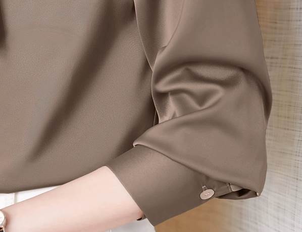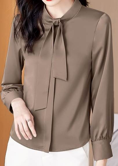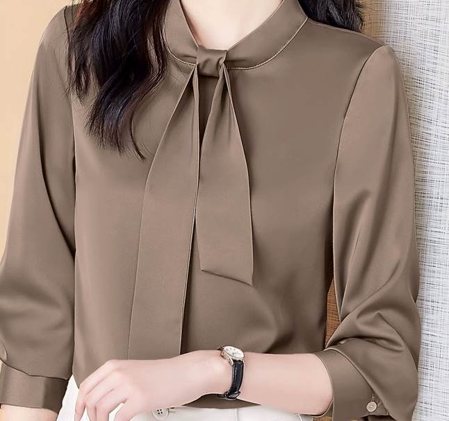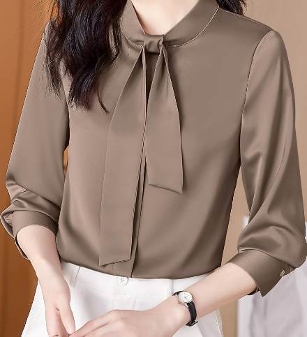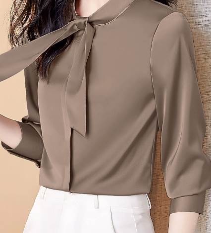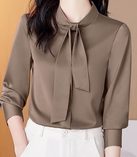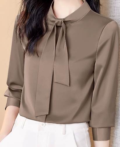 レディース トップス シャツ 長袖 袖ボタン 襟なし ボウタイ ストレート スマート シフォン かわいい 大人可愛い きれいめ シンプル 上品 おしゃれ ガーリー エレガント キュート 清潔感 クール