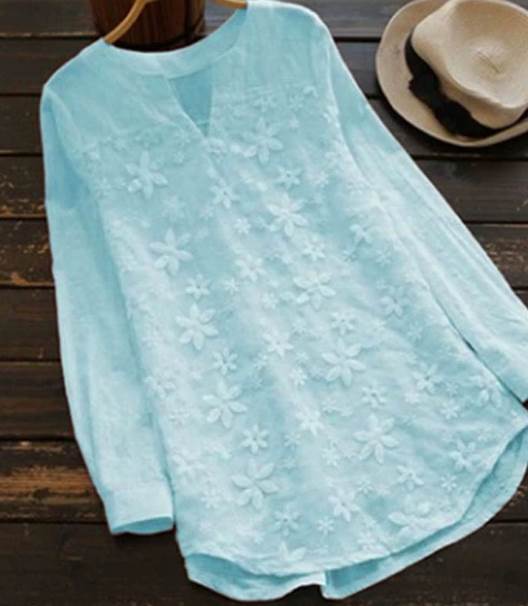 エレガントで上品な花柄の刺繍が綺麗な長袖Tシャツ。お尻まですっぽりと隠れる長めの丈なので体型の悩みをふんわりカバーしてくれるのも嬉しいポイント。柔らかな色味が大人女性の魅力を引き立ててくれる一枚です。クロップド丈のパンツと相性抜群。足元にサンダルを持ってくると爽やかさがアップします。