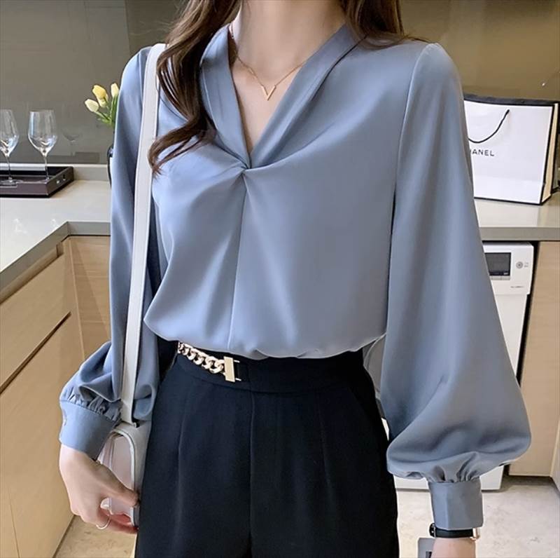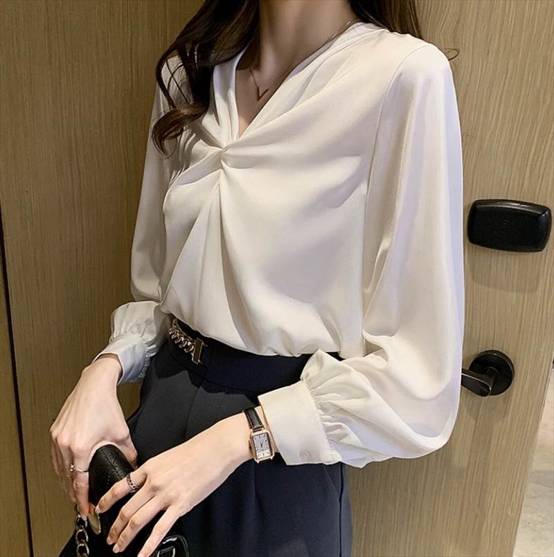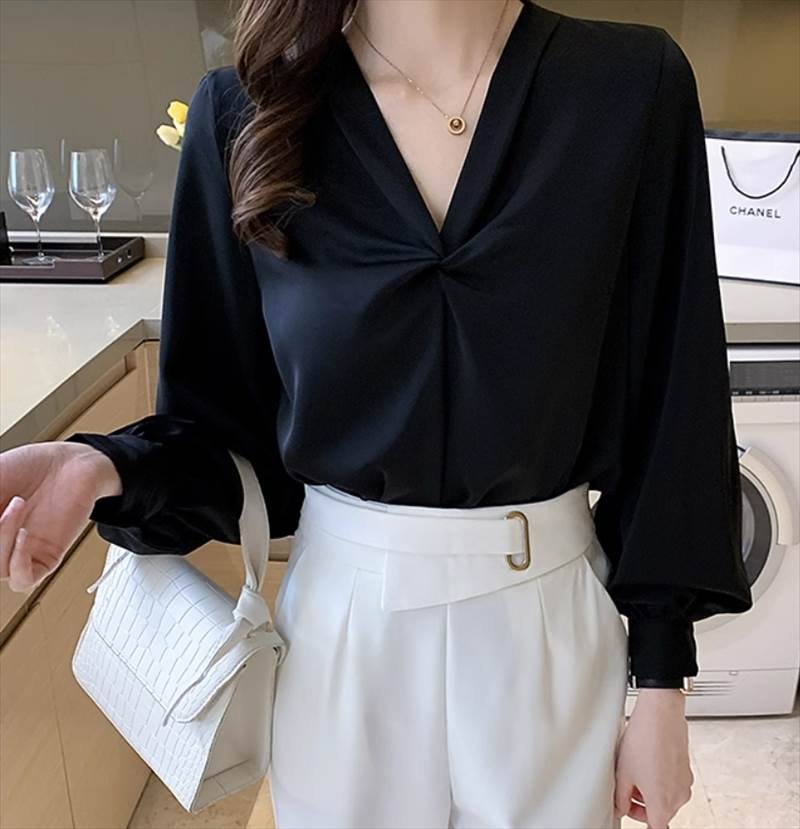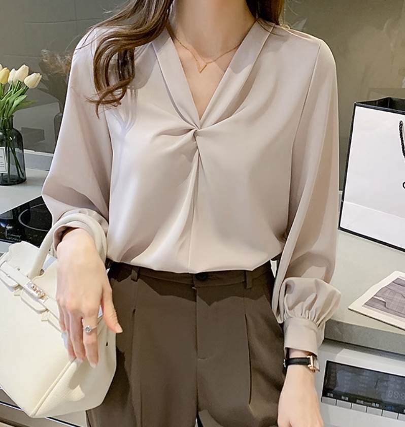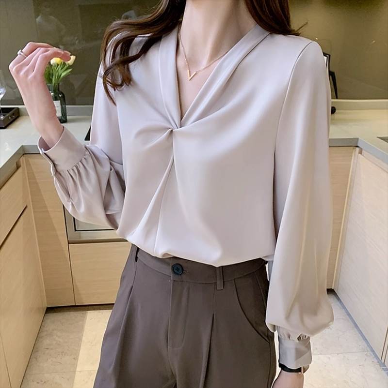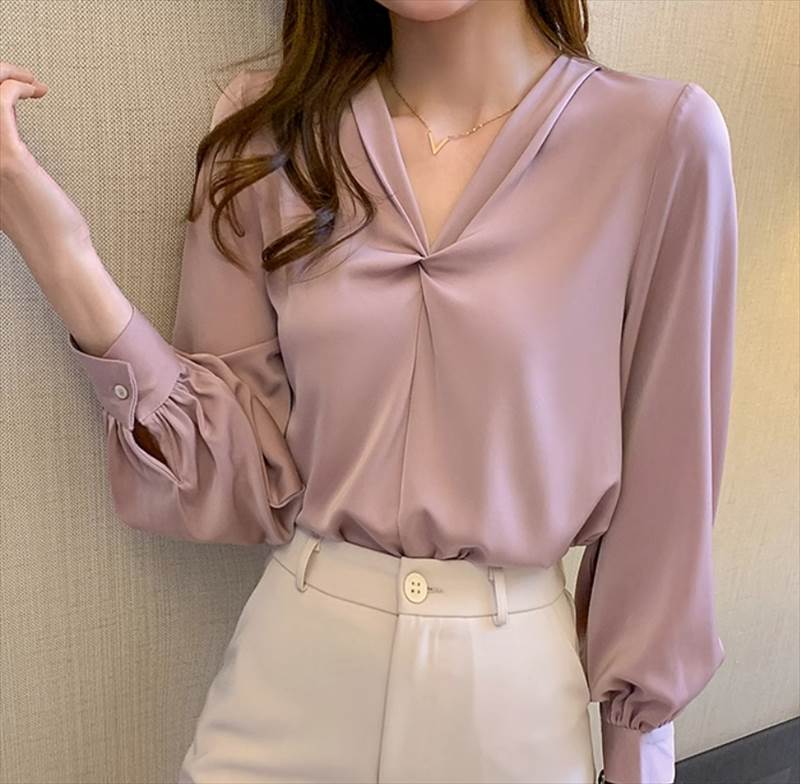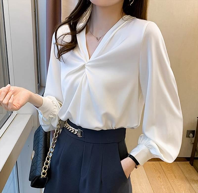 トップス シャツ ミドル丈 長袖 Vネ レディースファッション 続々登場 アプリコット ホワイト ピンク ブルー ブラック S M L XL 2XL