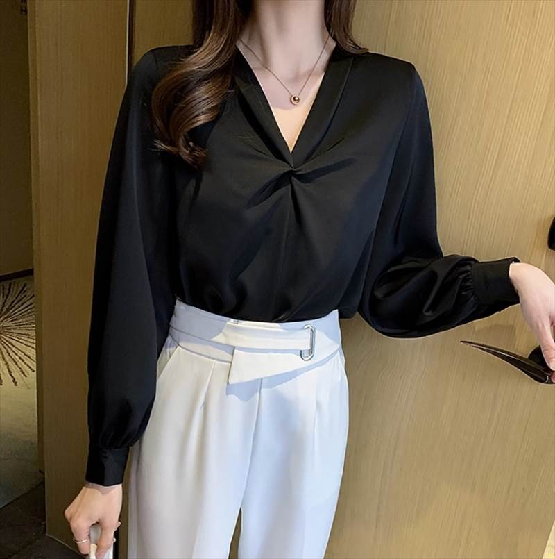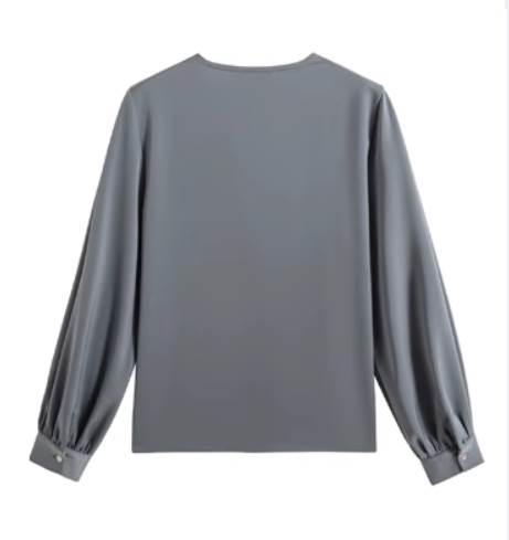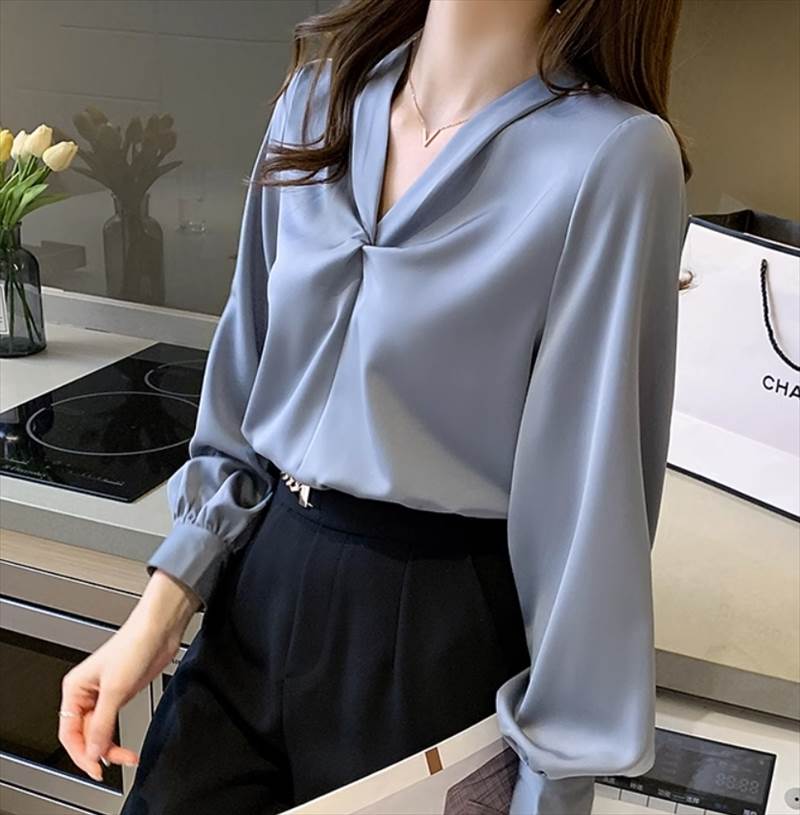 大人女子にぴったりの上品な長袖シャツが登場しました。Vネックでデコルテを美しく魅せ、ノーカラーのデザインで、きちんと感も演出できます。ストレートなシルエットで、スッキリとした印象に。ミドル丈なので、パンツスタイルにもスカートスタイルにも合わせやすい万能アイテムです。ビジネスからデートまで、様々なシーンに使えるので、ワードローブに一枚持っていると大変便利です。