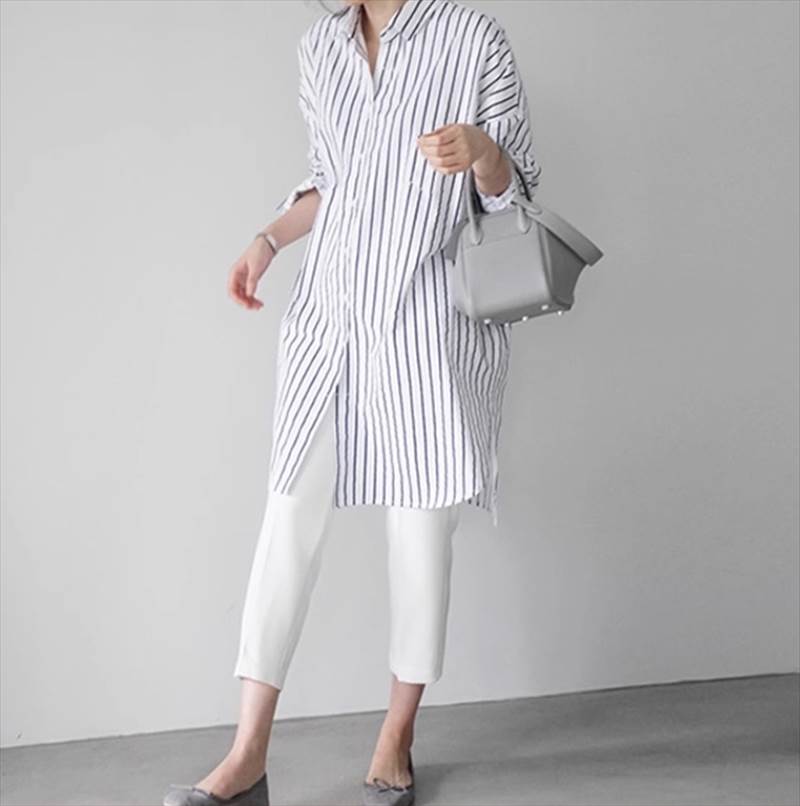 レディース トップス シャツ ロング トップス シャツ ブラウス 割引 ホワイト ストライプ ブラック ブラウン S M L XL 2XL