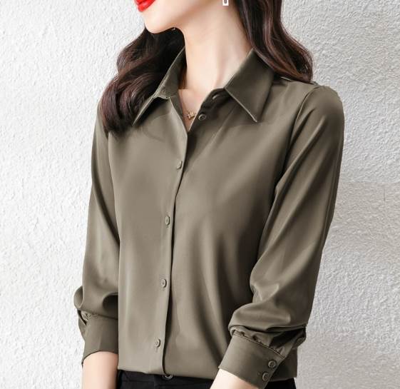 トップス シャツ ブラウス 長袖 襟付 レディースファッション 42%Off カーキ ホワイト クリーム ダークグリーン M L XL 2XL 3XL