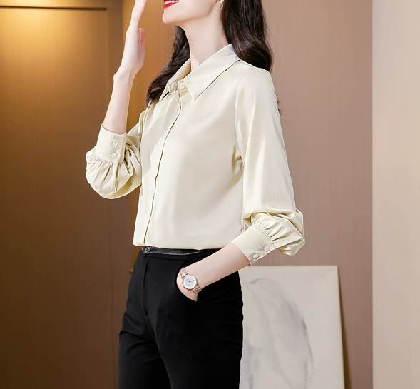 トップス シャツ ブラウス 長袖 襟付き 前開き かわいい きれいめ シンプル 大人 上品 おしゃれ かっこいい レトロ こなれ感 クール フォーマル 個性的 主役級 無地 オールシーズン 2 存在感