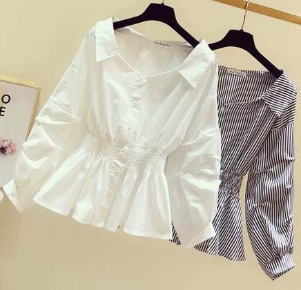 シャーリング トップス シャツ カットソー 袖あり 長袖 ボリューム袖 Vネック 襟付き フレア セミフレア ウエストマーク かわいい 大人可愛い きれいめ シンプル カジュアル 大人 上品 おしゃれ お洒落 大人女子 モダン 存在感 無地 ストライプ 春 秋 誕生日 20代 30代 レディース 女性用 ママ ビジネス OL 通勤 学生 通学 デート お出かけ 休日 イベント 旅行 ホテル ガーデン レストラン 着回し 普段使い 重ね着 M L XL 2XL 3XL 4XL 白 ホワイト 黒 ブラック
