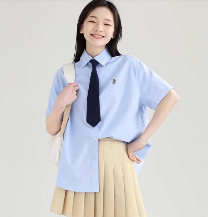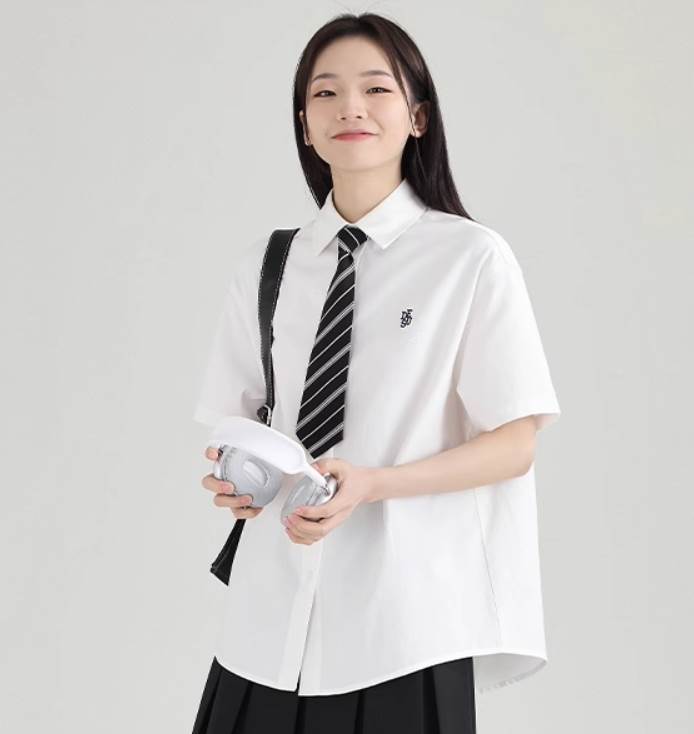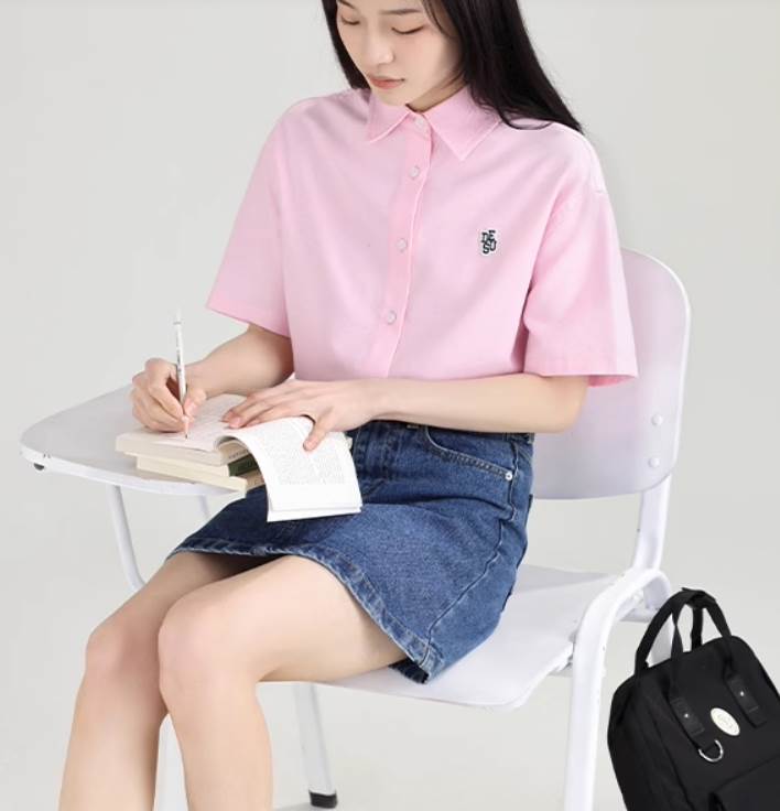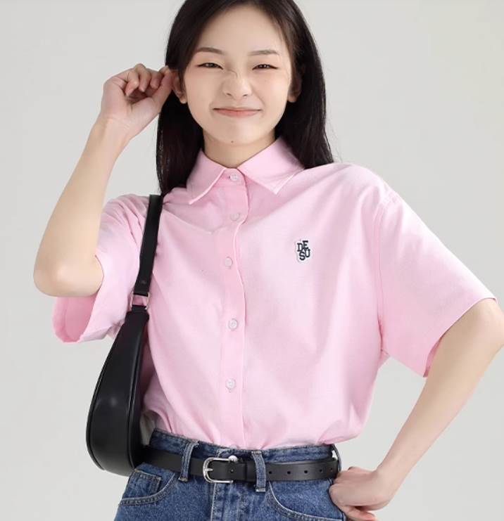 かわいくておしゃれなロング半袖シャツです。シンプルなデザインでありながらも、襟付きで女性らしさを引き立てます。カジュアルながらもガーリーな印象を与え、カレッジ風や学生風のスタイルにもピッタリです。夏にもぴったりで、学校や通学、デートやお出かけ、休日のコーディネートにも活躍します。レイヤードスタイルにも使え、定番アイテムとして重宝します。