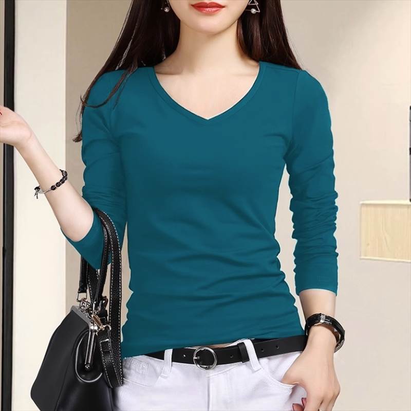 トップス Tシャツ 白トップス ミドル丈 長袖 Vネック スリム ストレート きれいめ シンプル カジュアル おしゃれ お洒落 無地 10代 20代 30代 レディース お出かけ ファッション コーデ スタイル 楽ちん サイズ S M L XL 2XL 3XL 色展開 ホワイト ブラック レッド イエロー ピーコックブルー モカ
