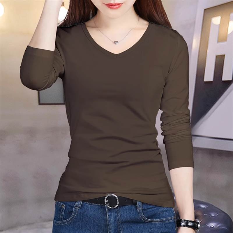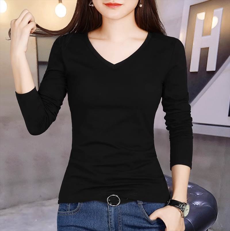 トップス Tシャツ 白トップス ミドル丈 長袖 Vネック スリム ストレート きれいめ シンプル カジュアル おしゃれ 無地 10代 20代 30代 レディース ファッション コーデ 大人女 お出かけ