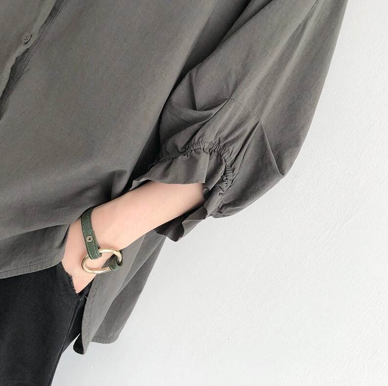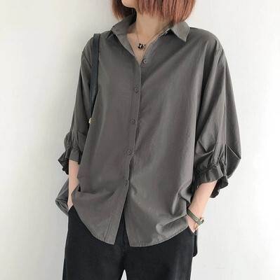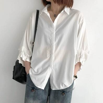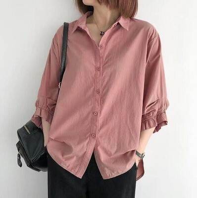 トップス シャツ 七分袖 フリル 薄手 かわいい きれいめ シンプル カジュアル 大人 上品 おしゃれ かっこいい レトロ こなれ感 ラフ 抜け感 無地 春 夏 秋 20代 レディース 前開き 10代