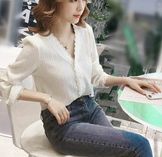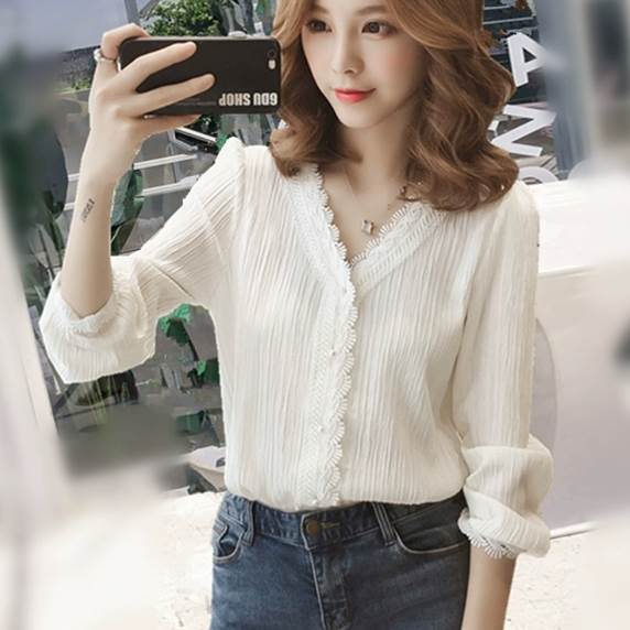 トップス シャツ 長袖 襟なし Vネッ トップス シャツ ブラウス 続々登場 S M L XL
