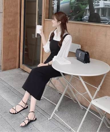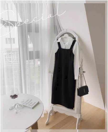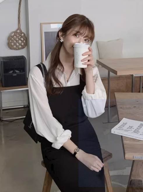 大人可愛いスタイルを叶える2点セット。シャツとジャンパースカートの組み合わせで、おしゃれな着こなしを楽しめます。細身のデザインとバックスリットが、女性らしいシルエットを演出。