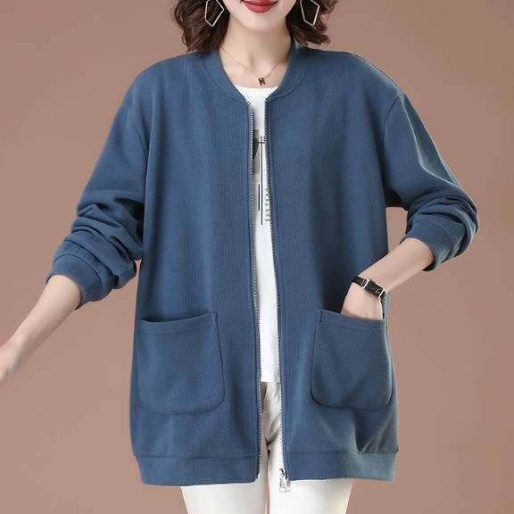 アウター ジャケット 上着 ミディアム丈 袖付き 長袖 襟なし ラウンドネック 前開き ファスナー ポケット かわいい 大人可愛い きれいめ シンプル 大人 上品 おしゃれ かっこいい 大人女子 レトロ こなれ感 クール モード系 個性的 主役級 存在感 無地 秋 冬 10代 20代 30代 レディース 女性用 ママ マタニティ OL 通勤 学生 通学 デート お出かけ 女子会 お泊まり 休日 リゾート 旅行 ホテル ショッピング レストラン イベント アウトドア 着回し 普段使い ファッション コーデ
