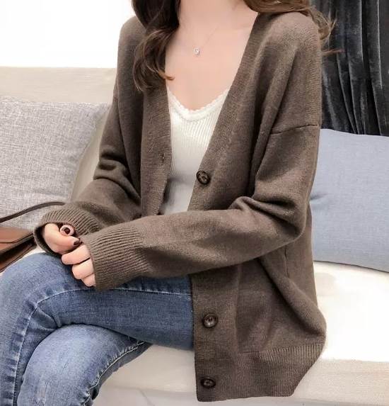 トップス カーディガン 袖付き 長袖 レディースファッション 続々入荷中 ベージュ グレー ブラック ブラウン S M L XL