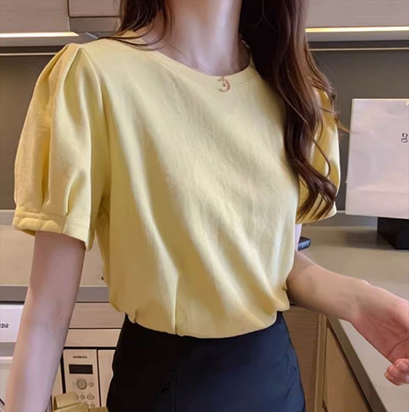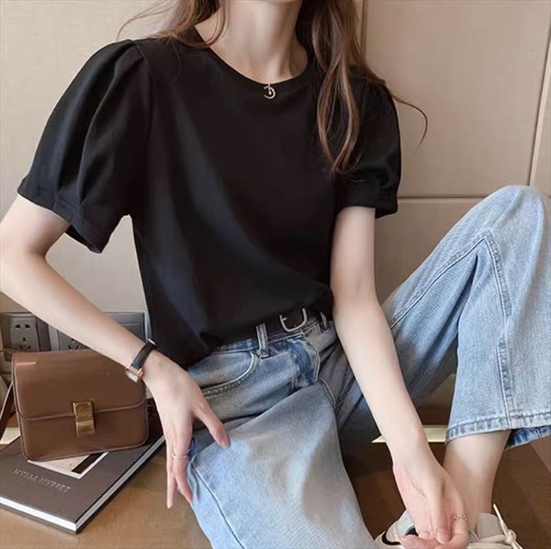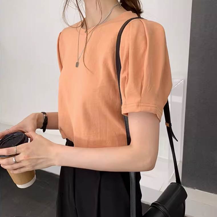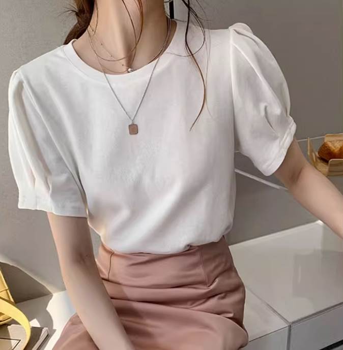 トップス Tシャツ 半袖 パフスリーブ Uネック ストレート かわいい 大人可愛い 大人女子 きれいめ シンプル カジュアル おしゃれ メンズライク ラフ 無地 夏 20代 30代 レディース 10代